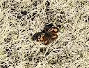 18日よぅーく観察すると、足跡が重なっているので、これは猫かな。猫は前足着地の上に後ろ足を着地させるのが特徴ですからね。やはり、望月さんちのトラ猫さんだったかな。
