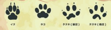 ここに住み始めてすぐの頃に野生動物の足跡を調べた記事があります。それを見るとやはり猫の足跡には見えませんわ。狸にも見えませんねぇ・・・。なんか鋭い細い爪がついているように見えます。イタチとかかしら?