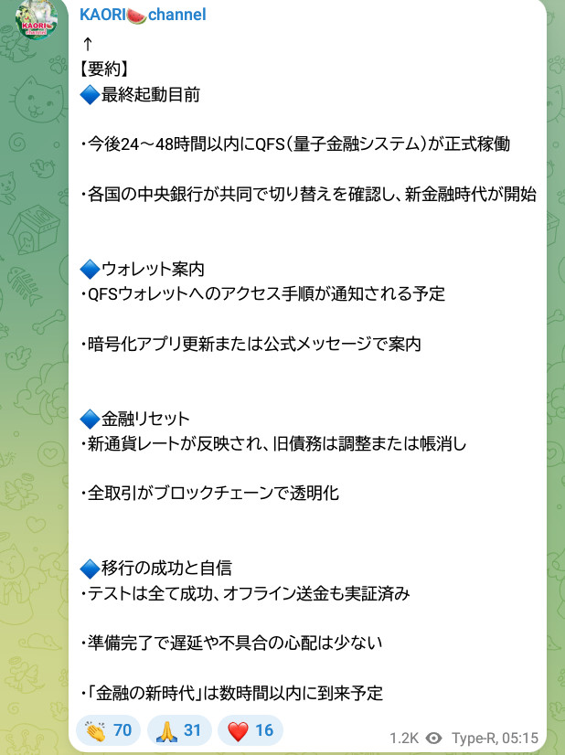 金に裏付けられていない大半の暗号通貨はオシャカ。(QFSネットワークに加われないから)