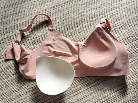 昨年、広告が流れてきて購入したのがこれです。中央の穴からパッドを出し入れします。洗濯のたびに出し入れするらしいですが、そんな面倒なことはしたくないし、パッドは嫌いなので捨てましたわ。