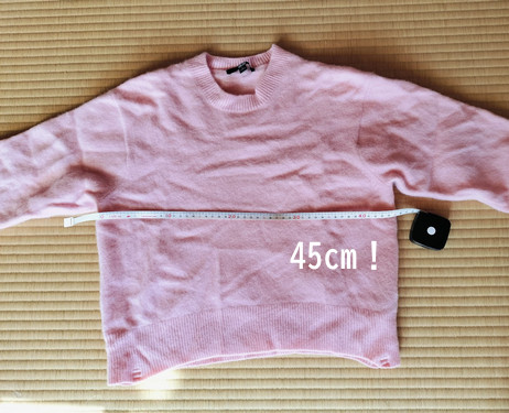これは実際は取引中止になって実害はありませんでしたが、こんな物を出す人もいるのかと絶句したケース。XSですら身幅のサイズは47センチです。なんたって、フェルト化するまで縮んでいるので、着ようたって着れません。伸びないんだもの。